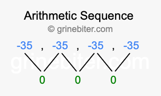 As stated above, the common difference (d) between each term is 0. Furthermore, the next term in -35, -35, -35, -35 is the fifth term (5), and the first term is -35. When we enter these values into our formula, we get the following answer: