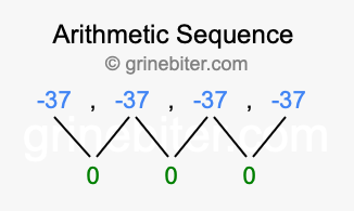 As stated above, the common difference (d) between each term is 0. Furthermore, the next term in -37, -37, -37, -37 is the fifth term (5), and the first term is -37. When we enter these values into our formula, we get the following answer: