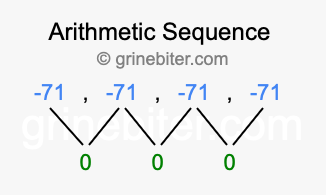 As stated above, the common difference (d) between each term is 0. Furthermore, the next term in -71, -71, -71, -71 is the fifth term (5), and the first term is -71. When we enter these values into our formula, we get the following answer: