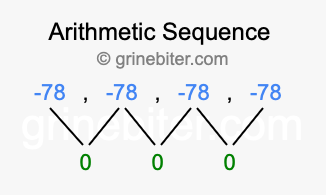 As stated above, the common difference (d) between each term is 0. Furthermore, the next term in -78, -78, -78, -78 is the fifth term (5), and the first term is -78. When we enter these values into our formula, we get the following answer: